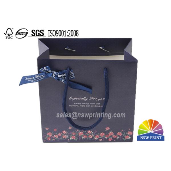 Ribbon Decorated Custom Designed Paper Shopping Bags With Handles , Premium Printed Images |